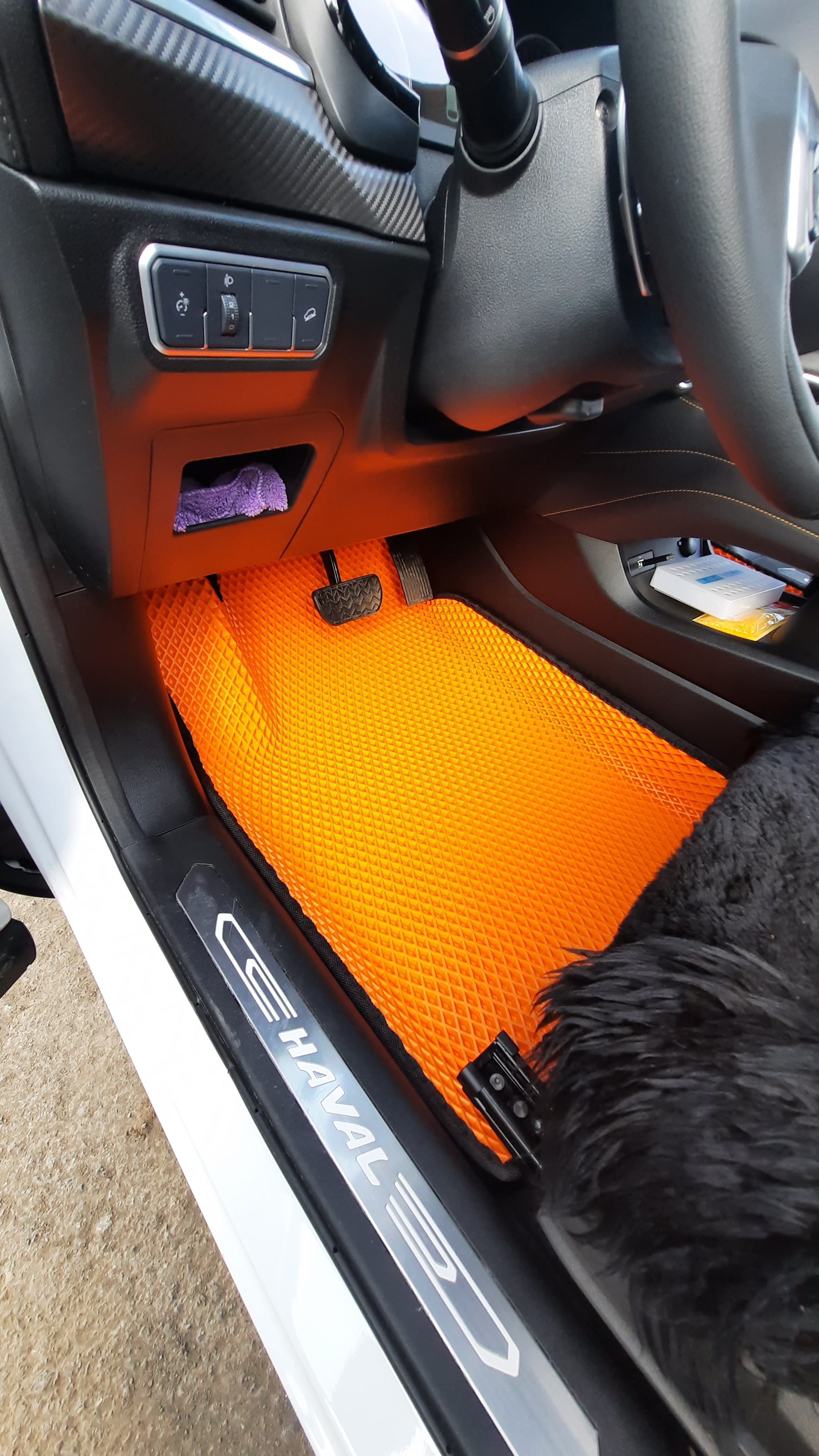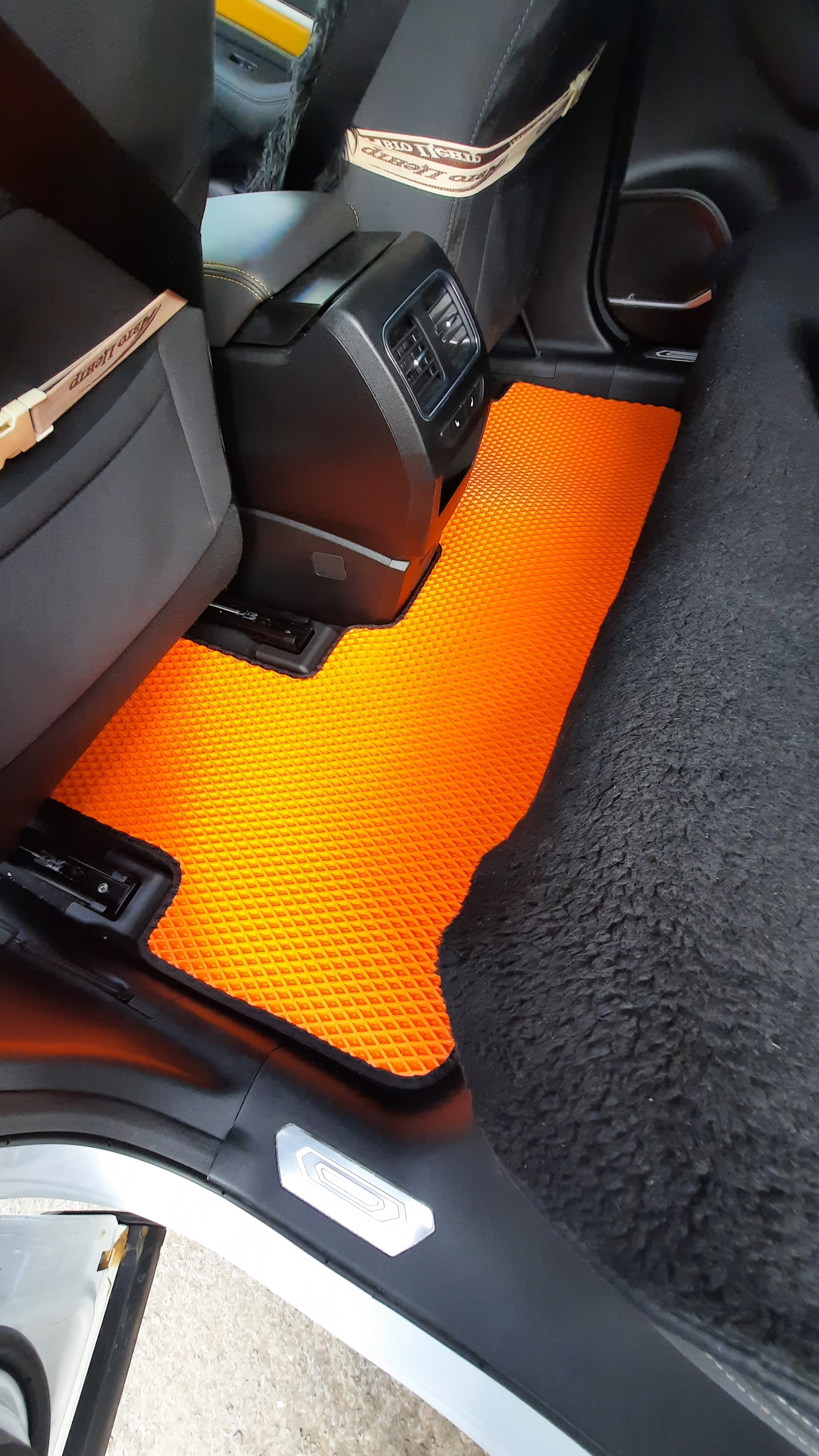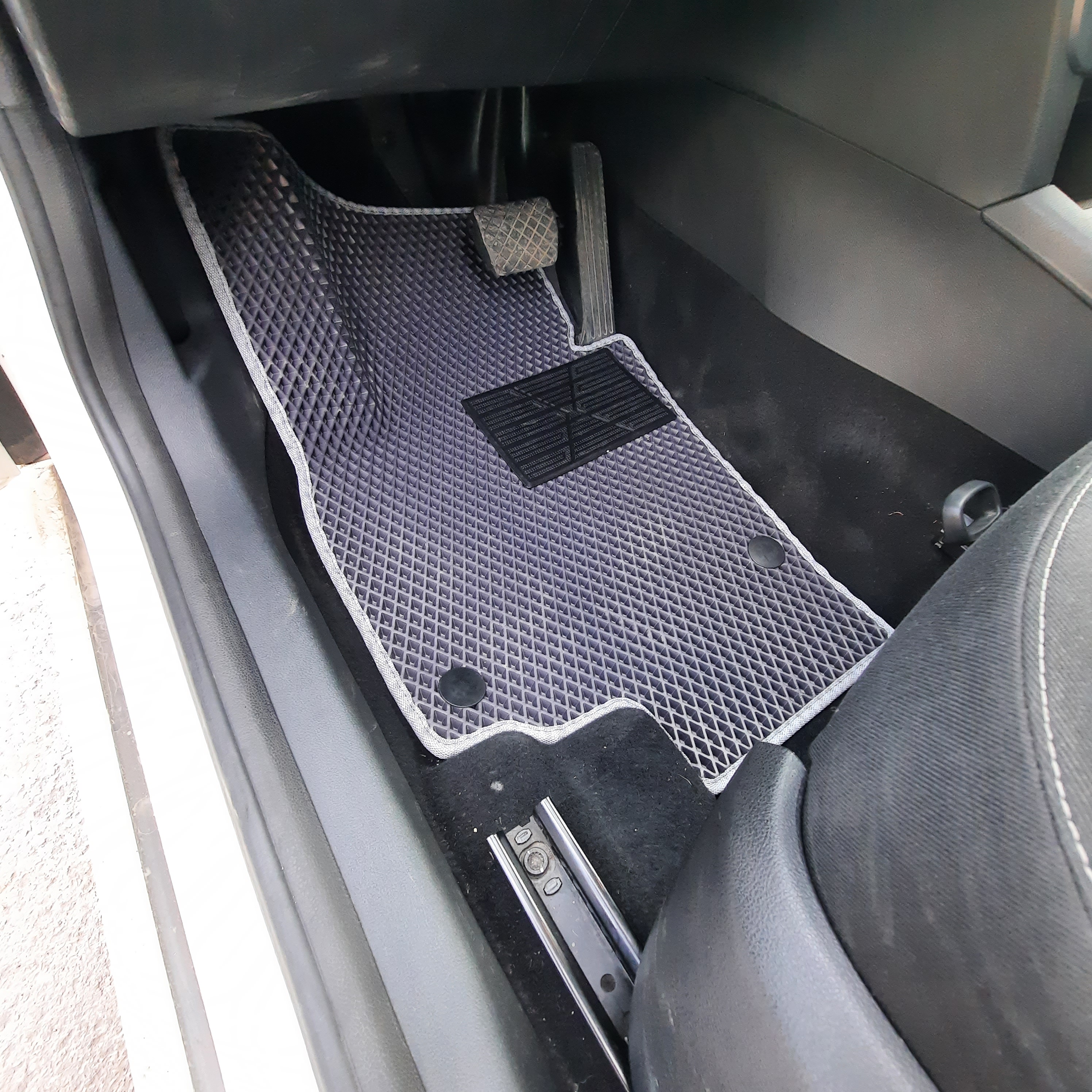 Формованные ковры точно повторяют все перепады пола с 3D зоной отдыха ноги водителя (без выреза) и с бортами по периметру